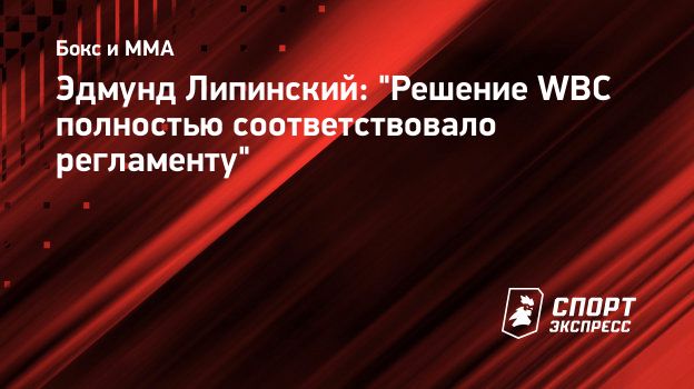 Эдмунд Липинский: "Решение WBC полностью соответствовало регламенту"
