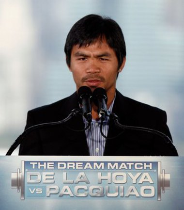 "Некоторые критикуют Оскара за выбор такого мелкого соперника, как я, - сказал Пакиао на пресс-конференции, состоявшейся у подножия статуи Свободы в Нью-Йорке. - Некоторые говорят, что я согласился на этот бой ради денег. Однако 6 декабря я докажу, что все они ошибаются. Это будет выдающийся боксерский поединок. Вы видели мои предыдущие бои и знаете, как Мэнни Пакиао дерется на ринге. 6 декабря вы увидите все это в удвоенном количестве. Неравного боя не будет". |