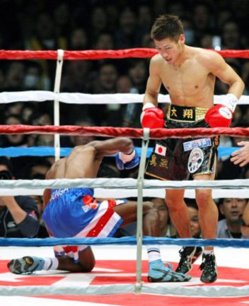 Японский боксер Ходзуми Хасегава защитил чемпионский титул WBC в категории до 53,5 кг, победив сегодня в Кобе южноафриканца Вузи Малингу, сообщает AP. Бой был завершен уже в первом раунде, когда чемпион дважды отправил претендента в нокдаун. Через 2 минуты 37 секунд после начала боя рефери присудил Хасегаве победу техническим нокаутом. Для Хасегавы это уже восьмая успешная защита титула, завоеванного им в апреле 2005 года. Всего же за семилетнюю профессиональную карьеру на счету японского боксера 28 боев, в которых он одержал 26 побед (из них 10 - нокаутом) и 2 ничьих. |