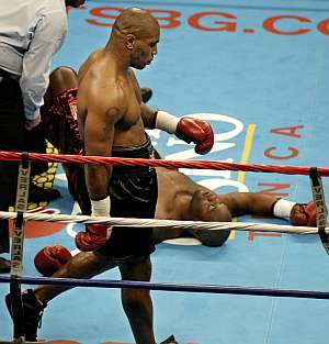 Экс-чемпион мира среди профессионалов в самой престижной супертяжелой весовой категории американец Майк Тайсон одержал впечатляющую победу над своим соотечественником Клиффордом Этьеном. Бой был прекращен на 49-й секунде первого раунда после того, как Железный Майк мощнейшим ударом правой послал своего соперника в нокаут. Этот успех возродил разговоры о возможности матча-реванша между Тайсоном и действующим чемпионом Ленноксом Льюисом. Напомним, что поединок против Этьена был под угрозой срыва, поскольку Майк целую неделю не тренировался, заявляя о том, что он болен гриппом. |