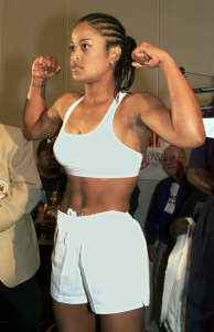 25-летняя дочь великого Мохаммеда Али победила во всех 15 боях, проведенных на ринге, 12 раз отправив соперниц в нокаут. Последний раз ей удалось решить судьбу боя одним ударом в день поединка Льюиса и Кличко-старшего, когда она в восьмом раунде отправила на пол Валери Мэфуд. |