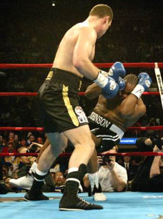 Украинский тяжеловес Виталий Кличко в ночь с субботы на воскресенье в нью-йоркском "Мэдисон Сквер Гардене" во втором раунде послал в нокаут канадца Кирка Джонсона. |