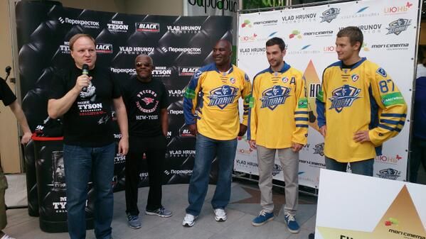 Бывший чемпион мира Эвандер Холифилд побывал в расположении "Атланта", сообщает пресс-служба клуба. Игроки подмосковной команды Александр Кадейкин и Максим Майоров вручили известному боксеру свитер "Атланта" и отметили, что хотят выйти с ним на лед в одной тройке.