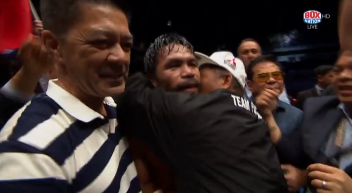 Пакиао празднует победу! А ведь в последний раз он отправлял соперника в нокаут аж в 2009 году!