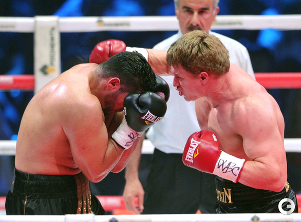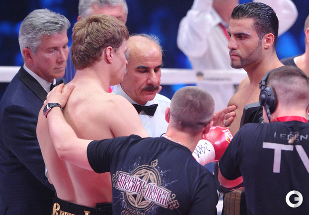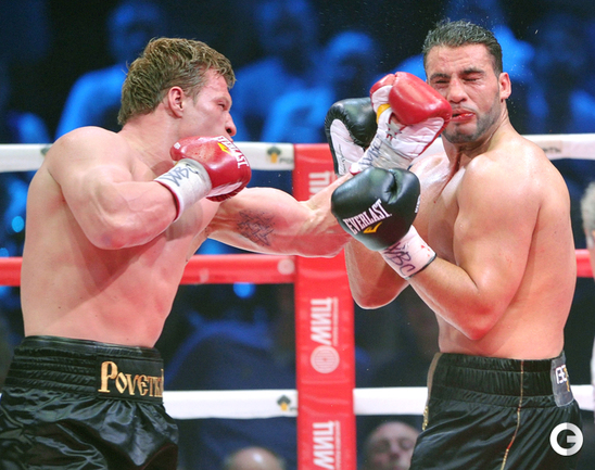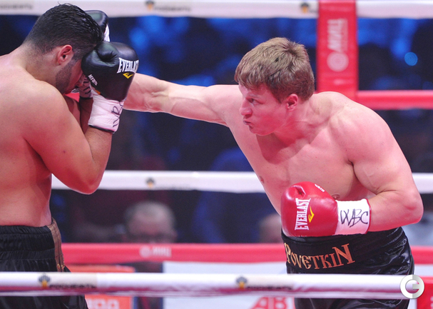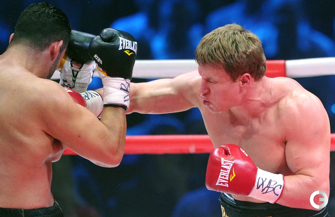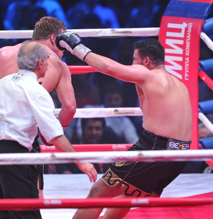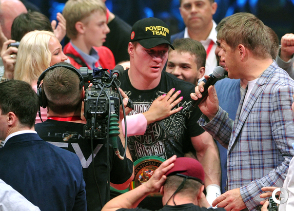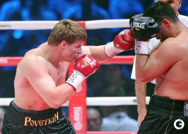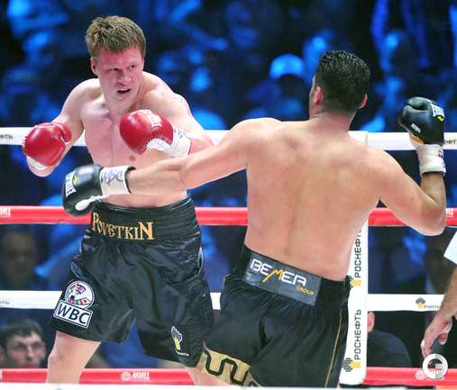 В Москве в рамках боксерского вечера экс-чемпионом мира в супертяжелом весе по версии WBA Александр Поветкин в седьмом раунде нокаутировал Мануэля Чарра. Российский тяжеловес, олимпийский чемпион и немец сирийского происхождения проводили бой за вакантный титул чемпиона мира по версии WBC International. Фото - Татьяна ДОРОГУТИНА, "СЭ"