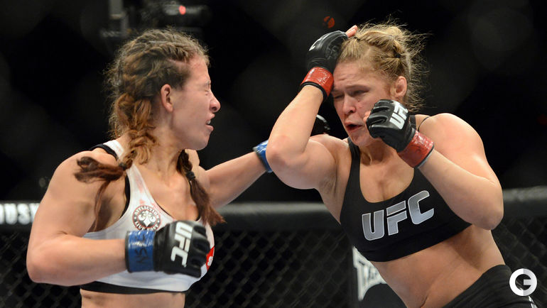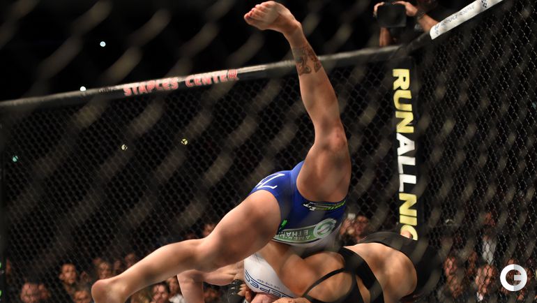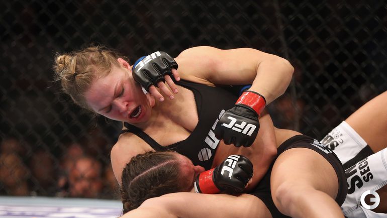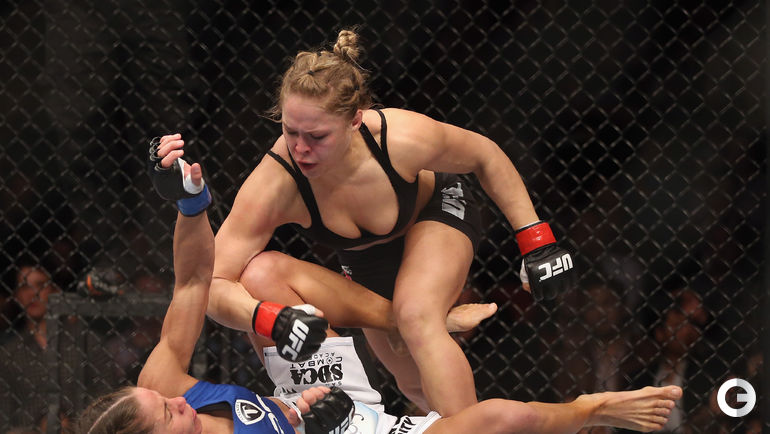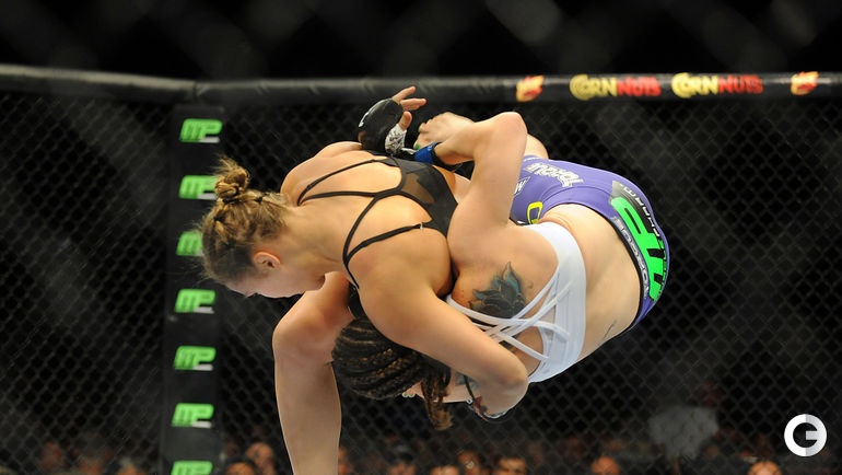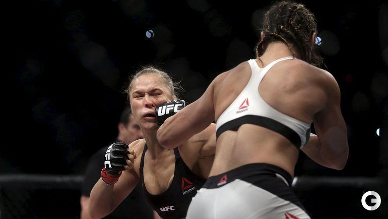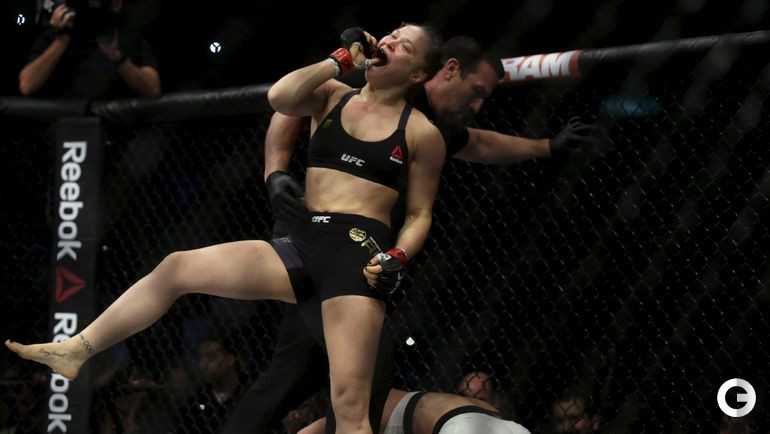Чемпионка UFC в легчайшем весе американка Ронда Роузи защитила свой титул в Рио-де-Жанейро, одержав победу над бразильянкой Бэт Коррейя. Главная звезда женских смешанных единоборств нокаутировала свою соперницу за 34 секунды. Лучшие снимки спортивной биографии спортсменки. Фото REUTERS и AFP