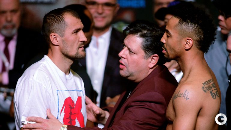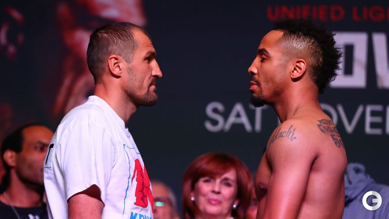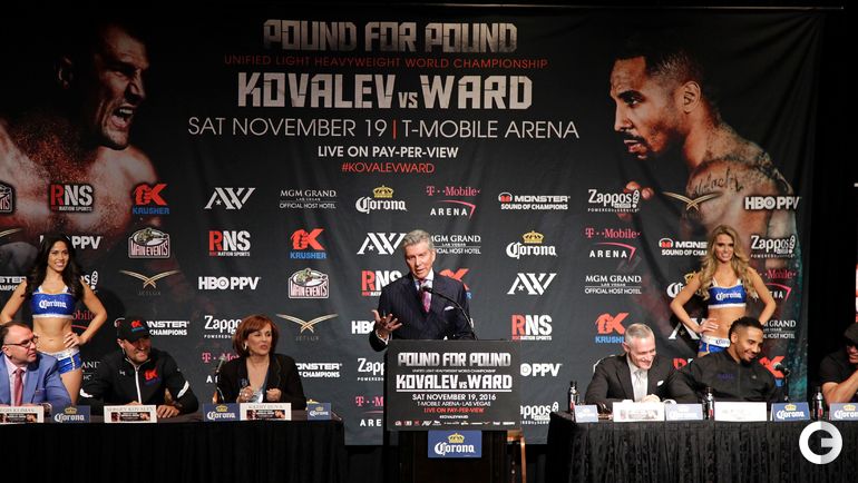 Сегодня ночью в Лас-Вегасе непобежденный чемпион мира по версиям WBA, WBO и IBF в полутяжелом весе Сергей Ковалев встретится с самым серьезным соперником в своей карьере – американцем Андре Уордом. Накануне поединка прошло взвешивание (оба показали одинаковый вес 79,37 кг - 175 фунтов), а также пресс-конференция.