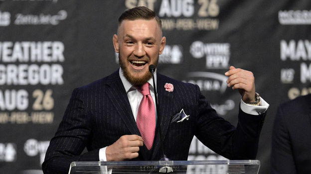 Выход Макгрегора к микрофону, которому дали слово первым, анонсировал глава UFC Дана Уайт. Макгрегор встал, одернув стильный деловой костюм с розовым галстуком, и подошел к микрофону.