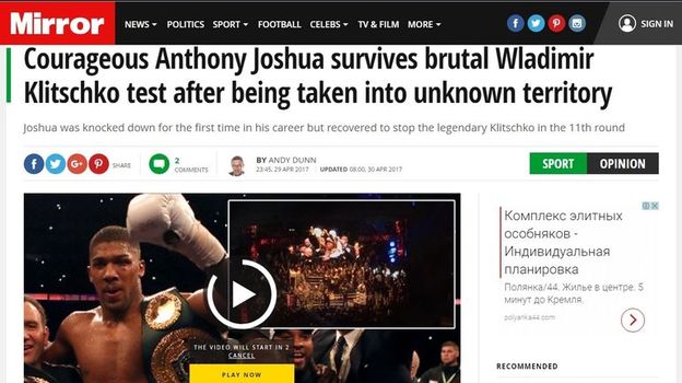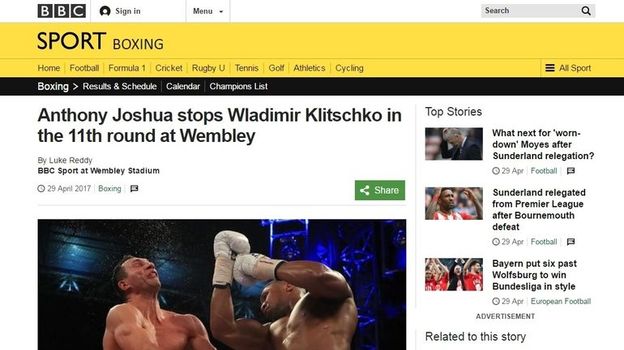 BBC: "К моменту остановки боя Джошуа вел по очкам"