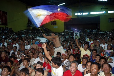 Зато сразу в голове возникли картины того, что происходит на родине сегодняшнего триумфатора - Филиппинах. Для местного населения Pacman (прозвище Пакиао по аналогии с героем компьютерной игры) - настоящий герой, гораздо более сильный и отважный, чем разнообразные киноаналоги, возведенные на пьедестал поклонения разнообразными "Фабриками грез". Все победы Пакиао становятся национальным праздником. Казалось бы, еще несколько минут назад вся страна находилась у экрана, а тут вдруг пустынные улицы заполняются ликующей толпой, которая не сдерживает себя в проявлении эмоций. Гуляйте, Филиппины! Пакиао в полнейшем порядке, и таких поводов еще будет много.