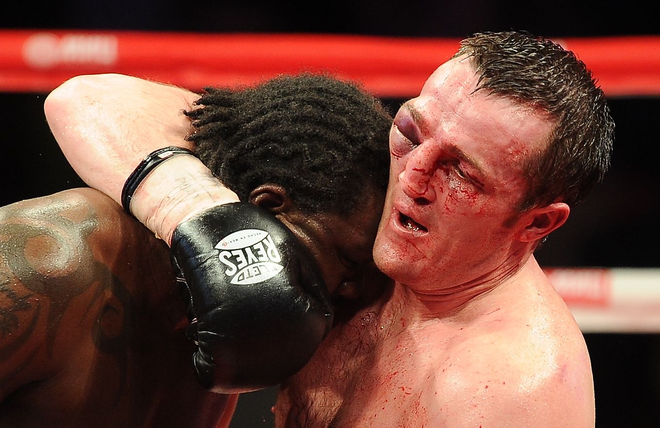 17 мая 2013 года. Москва. Денис ЛЕБЕДЕВ (справа) был готов довести бой с Гильермо ДЖОНСОМ до конца, несмотря на огромную гематому вокруг глаза... Фото - Антон СЕРГИЕНКО, "СЭ"