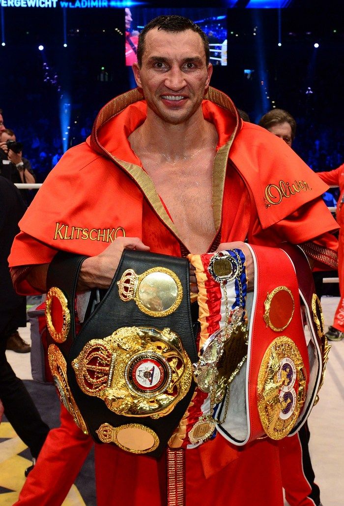 Владимир КЛИЧКО и его чемпионские пояса. Фото - AFP