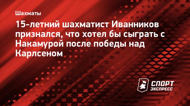 15-летний шахматист Иванников признался, что хотел бы сыграть с Накамурой после победы над Карлсеном