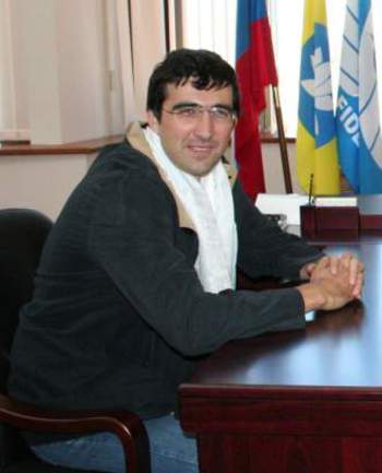 В третьей партии в матче на первенство мира по шахматам между Владимиром Крамником и Веселином Топаловым, в котором россиянин играл белыми фигурами, после 38-го хода зафиксирована ничья. Таким образом, счет по партиям стал 2,5:0,5. |
