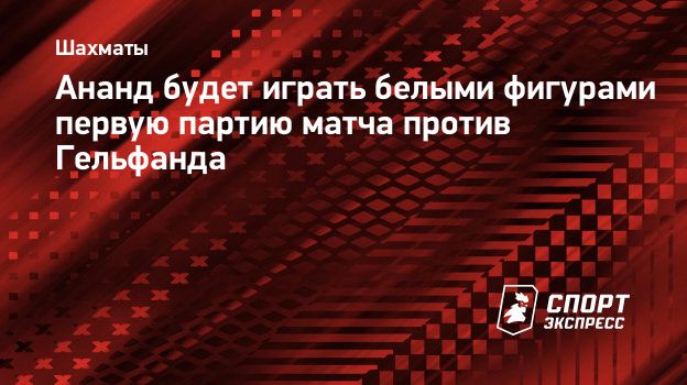 В первой партии матча за звание чемпиона мира ФИДЕ между 42-летним чемпионом Вишванатаном Анандом (Индия) и 43-летним претендентом Борисом Гельфандом (Израиль), который состоится 11 мая, белыми фигурами будет играть индийский гроссмейстер.