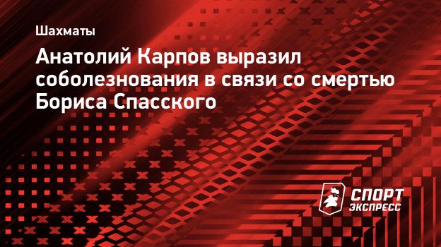 12-й чемпион мира по шахматам Анатолий Карпов в разговоре с «СЭ» выразил соболезнования в связи со смертью 10-го чемпиона мира Бориса Спасского.