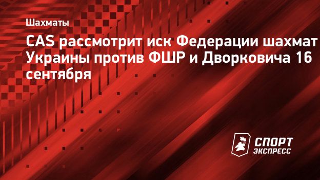 Спортивный арбитражный суд CAS рассмотрит апелляцию Федерации шахмат Украины против Федерации шахмат России (ФШР) и президента Международной шахматной федерации (FIDE) Аркадия Дворковича 16 сентября.