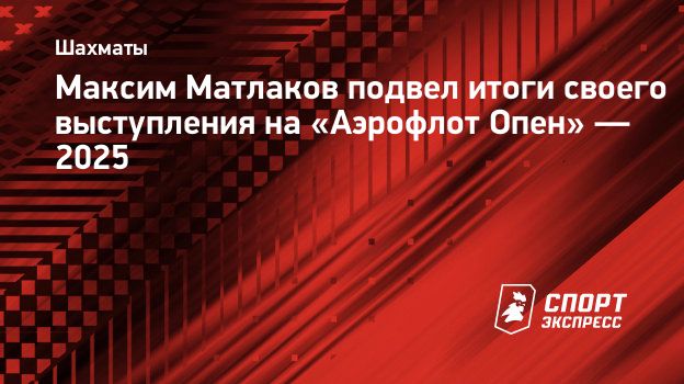 Максим Матлаков в разговоре с «СЭ» подвел итоги своего выступления на «Аэрофлот Опен» — 2025. Чемпион Европы-2016, вице-чемпион России-2023 занял четвертое место, набрав 6,5 очка.