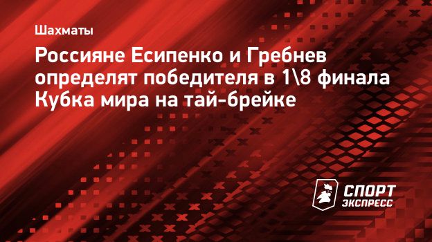 В 1/8 финала Кубка мира по шахматам россияне Андрей Есипенко и Алексей Гребнев сыграют тай-брейк. Их предыдущие партии завершились вничью, и победителя определить не удалось.