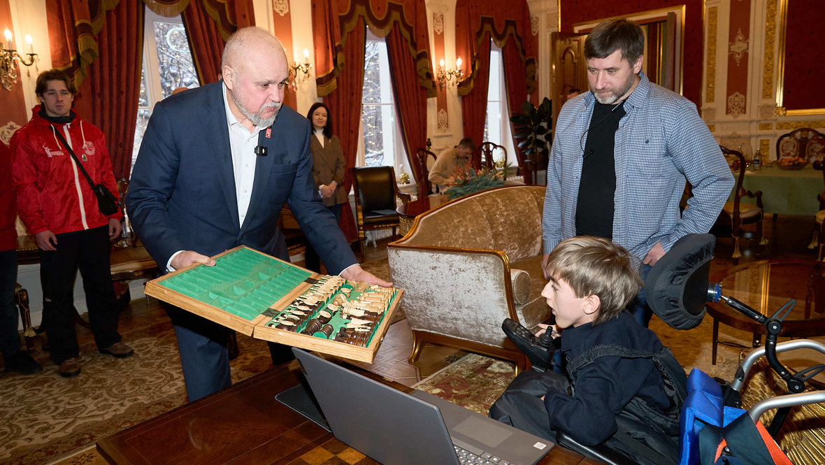 Сергей Цивилев подарил шахматы школьнику из Домодедова