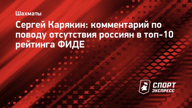 Гроссмейстер Сергей Карякин прокомментировал отсутствие россиян в топ-10 обновленного рейтинга Международной шахматной федерации (ФИДЕ).