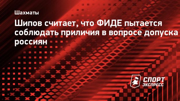 Международный гроссмейстер Сергей Шипов высказал мнение, что Международная шахматная федерация (ФИДЕ) пытается соблюдать приличия в вопросе допуска российских спортсменов до международных турниров, однако до полной отмены санкций еще далеко. Ранее ФИДЕ допустила российские и белорусские юношеские команды (до 18 лет) к участию в международных соревнованиях в нейтральном статусе.