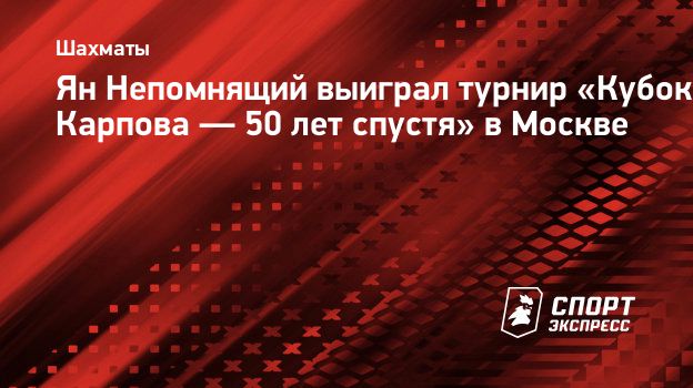 Ян Непомнящий стал победителем турнира «Кубок Карпова — 50 лет спустя», который прошел в Москве.