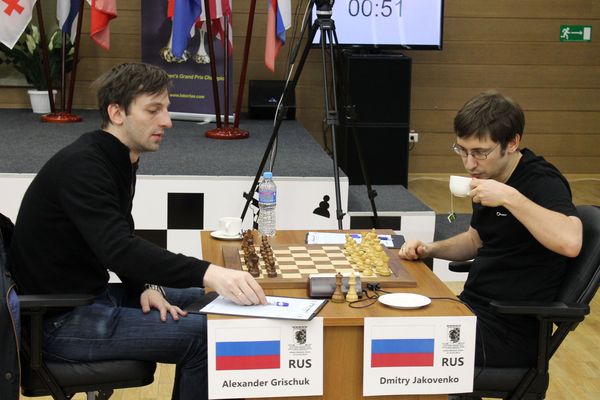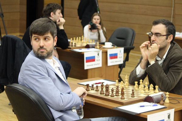Короткая ничья в защите Грюнфельда двух ровесников и друзей. Дмитрий Яковенко рассказал на пресс-конференции: "Мне почему-то показалось, что Саша уже бросил играть вариант с с6 и d5, и я не повторил свои записи. Принципиальное продолжение – 12.Qа4 Nb4. Я продумал над ним 15 минут, ничего не вспомнил и пошел на ничейный вариант, о существовании которого я знал".