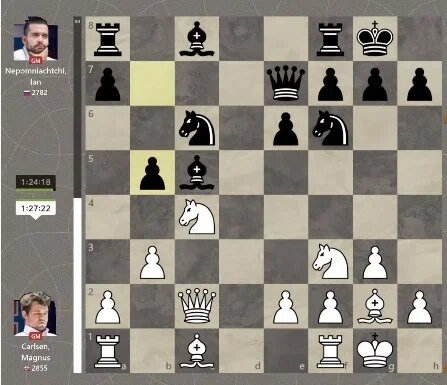 The first decisive game in a classical World Championship game in 5 YEARS! #CarlsenNepo pic.twitter.com/fqO38H54ls