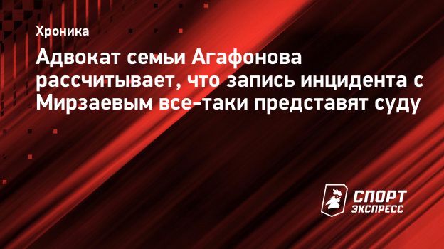Адвокат семьи Агафонова рассчитывает, что запись инцидента с Мирзаевым все-таки представят суду