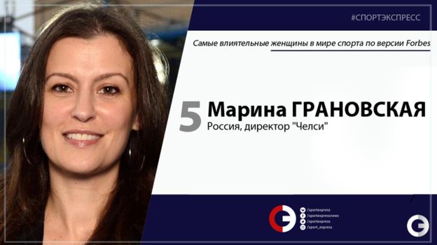 Forbes опубликовал рейтинг самых влиятельных женщин в мире спорта. Возглавила его генеральный секретарь ФИФА Фатма Самура, Марина Грановская, правая рука Романа Абрамовича в "Челси"?, заняла в нем пятое место, а лучшей среди действующих спортсменок, 8-й в списке, стала теннисистка Каролин Возняцки.