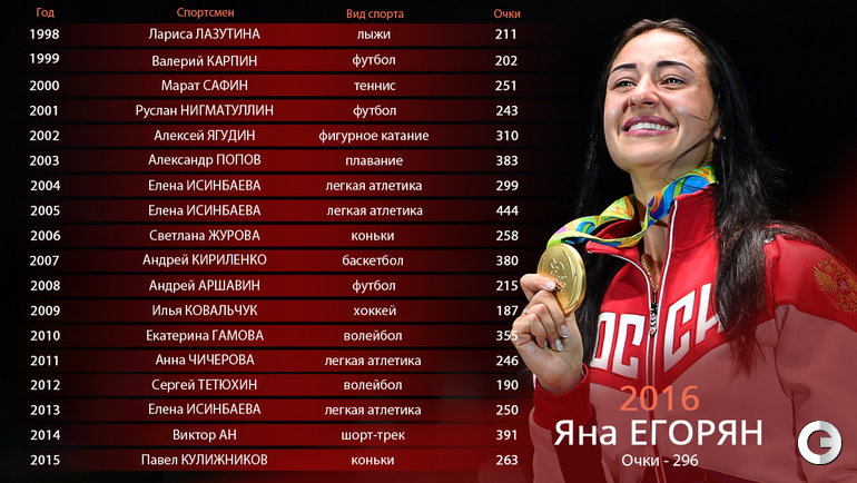 Спортсмен года. От Лазутиной и Карпина до Егорян