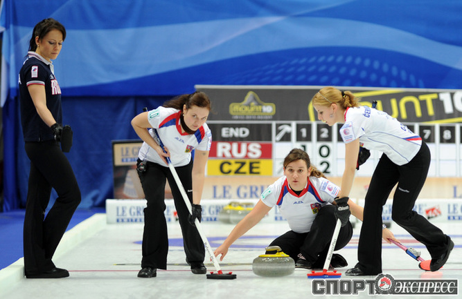 В Москве на арене "Мегаспорт" стартовал первый в истории нашей страны чемпионат Европы по керлингу. Женщины. 1-й тур. РОССИЯ – Чехия – 10:12. Шотландия – Норвегия – 8:6. Италия – Швейцария – 8:4. Швеция – Дания – 9:6. Германия – Латвия – 7:5. Фото - Никита УСПЕНСКИЙ, "СЭ"
