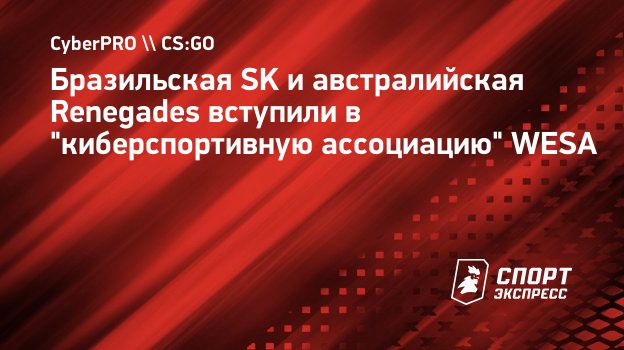 Бразильская SK и австралийская Renegades вступили в "киберспортивную ассоциацию" WESA