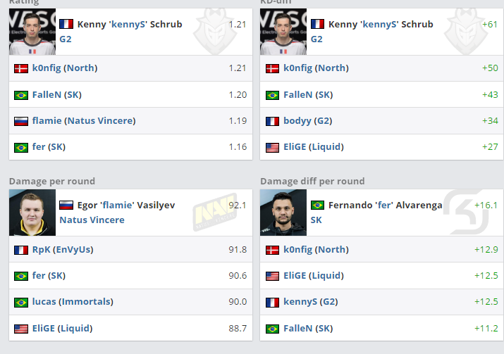 Игрок французского коллектива G2 Кенни "kennyS" Шраб показал наилучшую личную статистику на LAN-финале ESL Pro League, который состоялся на прошлой неделе в Далласе. В составе своей команды Шраб стал победителем чемпионата. В финале со счетом 3:1 был переигран состав футбольного "Копенгагена" – датская North. Победитель и финалист заработали по 225 и 100 тысяч долларов соответственно.