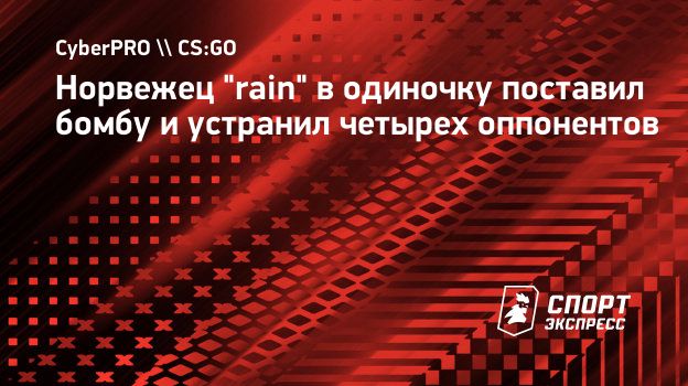 Игрок состава FaZe Clan по CS:GO Ховард "rain" Найгард продемонстрировал высокий уровень мастерства на карте Dust 2. Норвежец в одиночку поставил бомбу и устранил четырех соперников. Эпизод произошел в одном из матчей на платформе FACEIT.