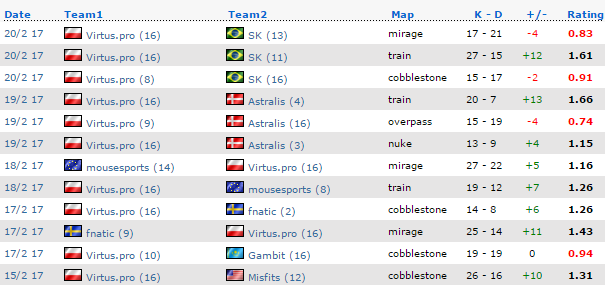 Погоржельски получил рейтинг 1.66 в полуфинальной встрече против Astralis и 1.61 в финале против SK на карте @Train. За весь чемпионат "Snax" закончил лишь 4 матча из 12 с рейтингом ниже 1.00.