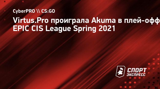 Украинская Akuma победила Virtus.pro в верхней сетке плей-офф EPIC CIS League Spring 2021. Счет по картам: 16:9 на Mirage и 16:6 на Dust 2.