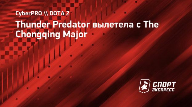Thunder Predator проиграла Evil Geniuses в нижней сетке на The Chongqing Major по Dota 2 и покинула турнир. Коллектив из Перу занял 9–12 место и заработал 15 тысяч долларов и 150 очков DPC.