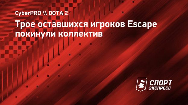 Трое игроков европейского коллектива Escape Gaming Троелс "SyndereN" Нильсен, Макс "qojqva" Брокер и Адриан "Era" Крезиу покинули коллектив, сообщает официальный сайт организации. Киберспортсмены продолжат совместное выступление, но уже по тегом другой команды. Ранее немец Морис "KheZu" Гутман перешел из Escape в другой европейский коллектив Team Secret, а Иорданец Язид "YapzOr" Жарадат ушел из пятерки 27 декабря, после чего присоединился к Адриану "FATA" Тринксу в B)ears.