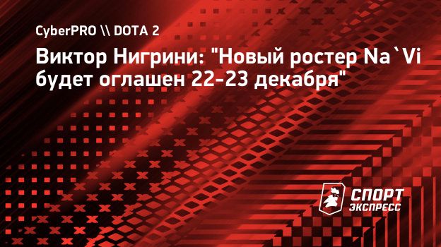 Игрок украинской Natus Vincere Виктор "General" Нигрини заявил на своей странице в социальной сети о том, что новый состав по Dota 2 будет оглашен 22 или 23 декабря.