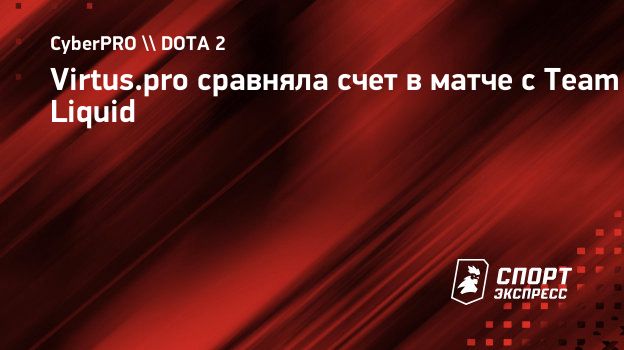 Состав российской организации Virtus.pro по Dota 2 сравнял счет в матче 4-го раунда нижней сетки плей-офф The International 2017 с Team Liquid – 1:1. Напомним, именно "Ликвид" выбила из турнира другую российскую команду – Team Empire. Поединок проходит до двух побед. Проигравший коллектив завершит выступление на соревновании.