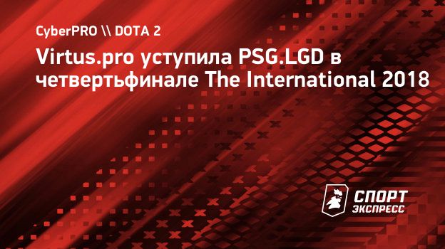 Состав по Dota 2 российской организации Virtus.pro уступил китайской PSG.LGD, представляющей футбольный клуб "ПСЖ", в четвертьфинале верхней сетки The International 2018. Счет матча – 2:0. "Медведи" упали в нижнюю сетку, где встретятся с победителем противостояния Mineski и TNC Predator.