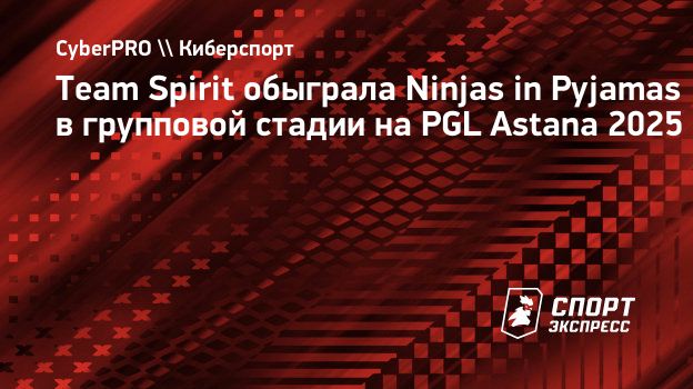 В матче второго раунда группового этапа PGL Astana 2025 по CS2 команда Team Spirit одержала победу над Ninjas in Pyjamas со счетом 2:0. Игры прошли на картах Train (16:13) и Dust2 (13:4). Эта победа стала второй для команды Леонида chopper Вишнякова на чемпионате.