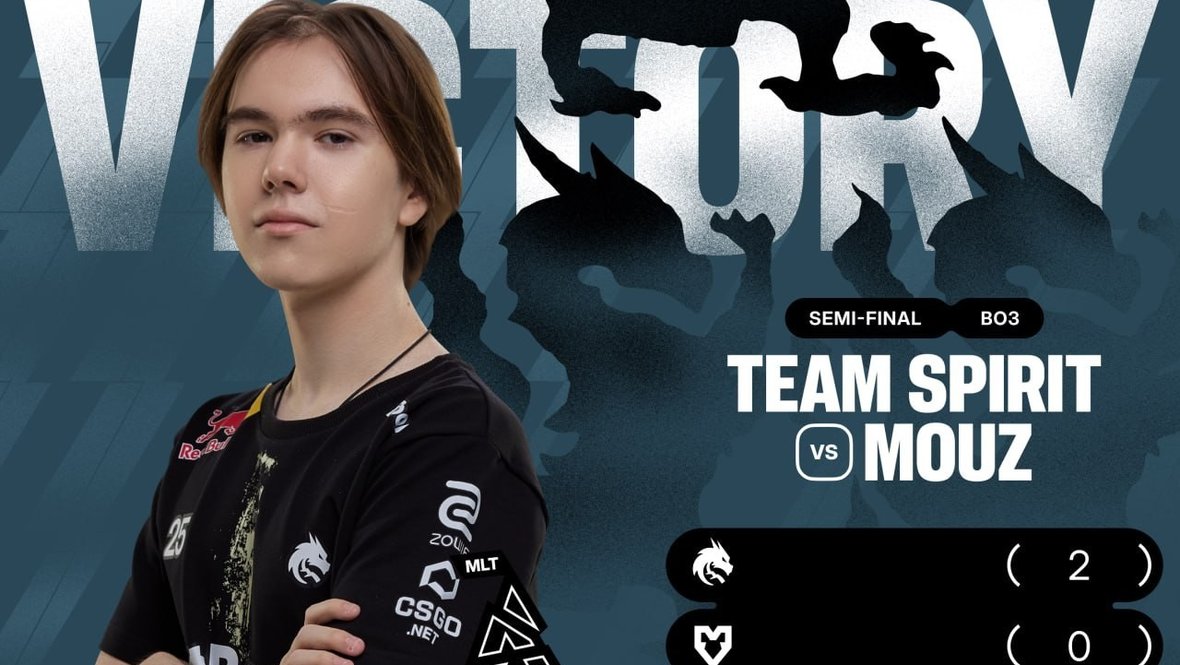 Коллектив Леонида «chopper» Вишнякова обыграл второй турнир подряд MOUZ в плей-офф. Первая карта выдалась тяжелой для Spirit. Однако они показали высокий уровень игры и на допах смогли вырвать победу со счетом 16:14 (Dust2). А вторая завершилась разгромной победой «Драконов» 13:5. Итоговый счет 2:0 и путевка в гранд-финал. Лучшим игроком матча был признан Данил «donk» Крышковец (1.40).