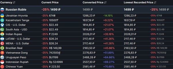 Долгое время Турция была наиболее привлекательным вариантом для привязки аккаунта Steam. За несколько последних лет Valve несколько раз корректировала рекомендуемые региональные цены. Также сами крупные издатели и компании меняли политику в этом отношении. На данный момент Турция остается хорошим вариантом для выбора привязки страны, но уже не «выигрывает» существенно в цене.