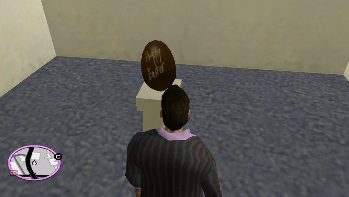 Grand Theft Auto: Vice City — проект в жанре action-adventure, сочетающий в себе элементы шутера от третьего лица и автосимулятора в большом и открытом для исследования мире. Данная часть развивает основные идеи геймплея предыдущих проектов студии Rockstar — Grand Theft Auto 2 и Grand Theft Auto III: игроку предстоит выполнять преимущественно криминальные и противозаконные задания, выдаваемые различными персонажами. Знаменитое творение американских разработчиков содержит множество отсылок, одной из которых является секретная комната, доступная через стену на крыше здания радиостанции. Внутри находится яйцо на пьедестале с надписью, желающей счастливой Пасхи. Эта пасхалка — классический пример секрета, напрямую связанного с праздником, так как яйцо является ключевым символом торжества.