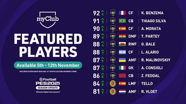 Компания Konami представила новую команду недели PES 2021, игроков из которой можно использовать в режиме MyClub. Она составляется на основе реальных заслуг игроков в этот промежуток времени.