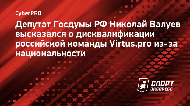 Депутат Госдумы РФ Николай Валуев в разговоре с корреспондентом «СЭ» высказался о дисквалификации российской команды Virtus.pro из-за национальности.