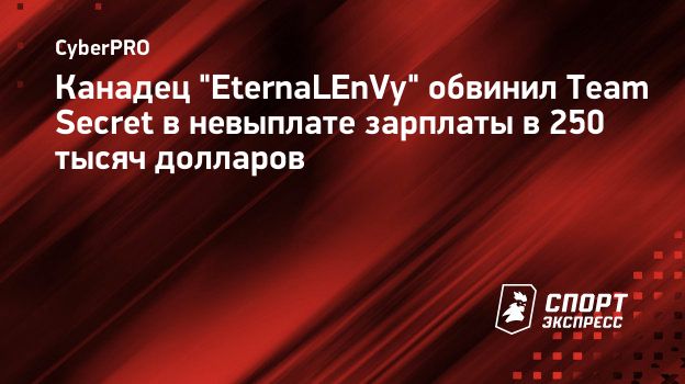 Канадец "EternaLEnVy" обвинил Team Secret в невыплате зарплаты в 250 тысяч долларов